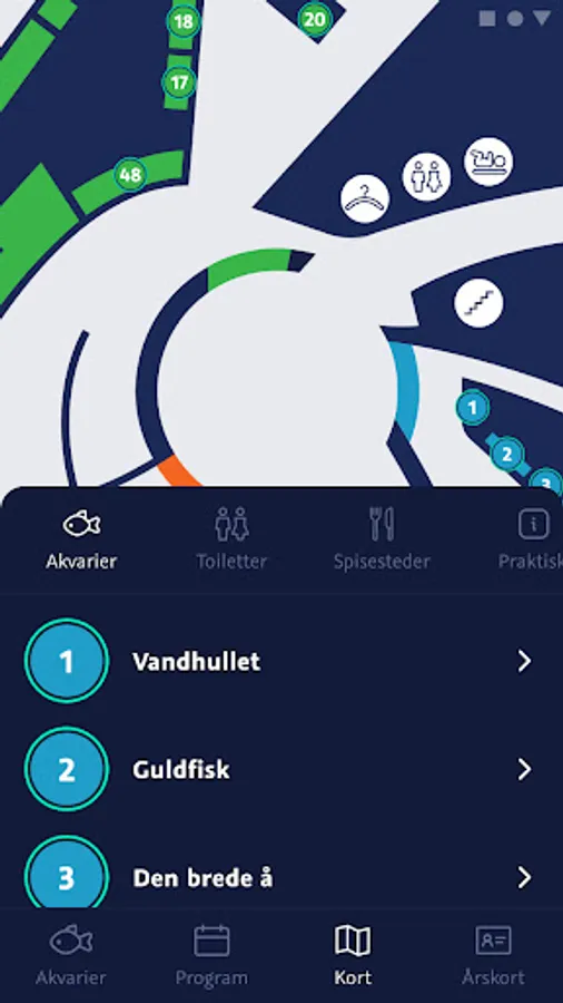 On the aquarium map, you see where the zones and the aquariums are placed so that you may find your way easily and get the information you are looking for.
