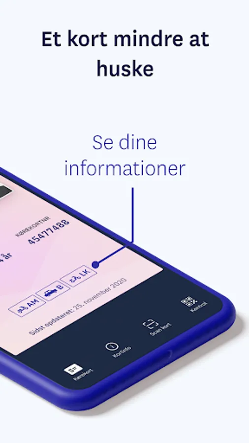 With the driving license app, you have your driving license at your fingertips. The app is a voluntary supplement to your physical driving license and functions as a valid driving license in Denmark.