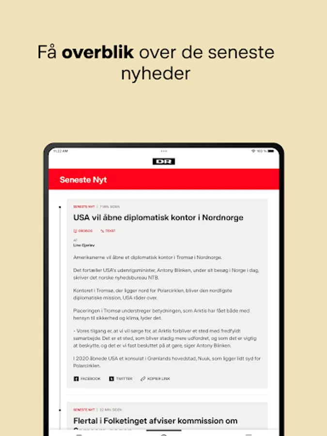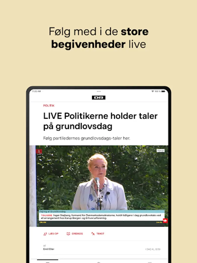 In addition, in the menu you can sort the news from the sections Home, Abroad, Politics, Money, Sports, Knowledge, Culture, Music, My Life, Weather, Straightforward and regional news. You can of course download DR News for free like DR's other digital offers.