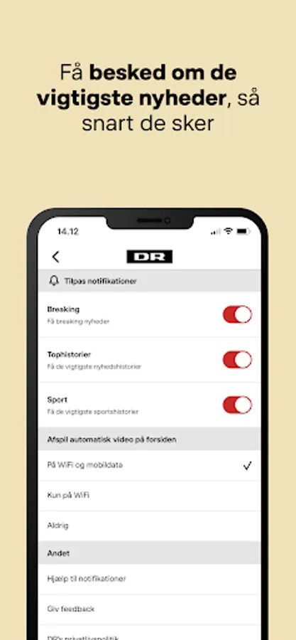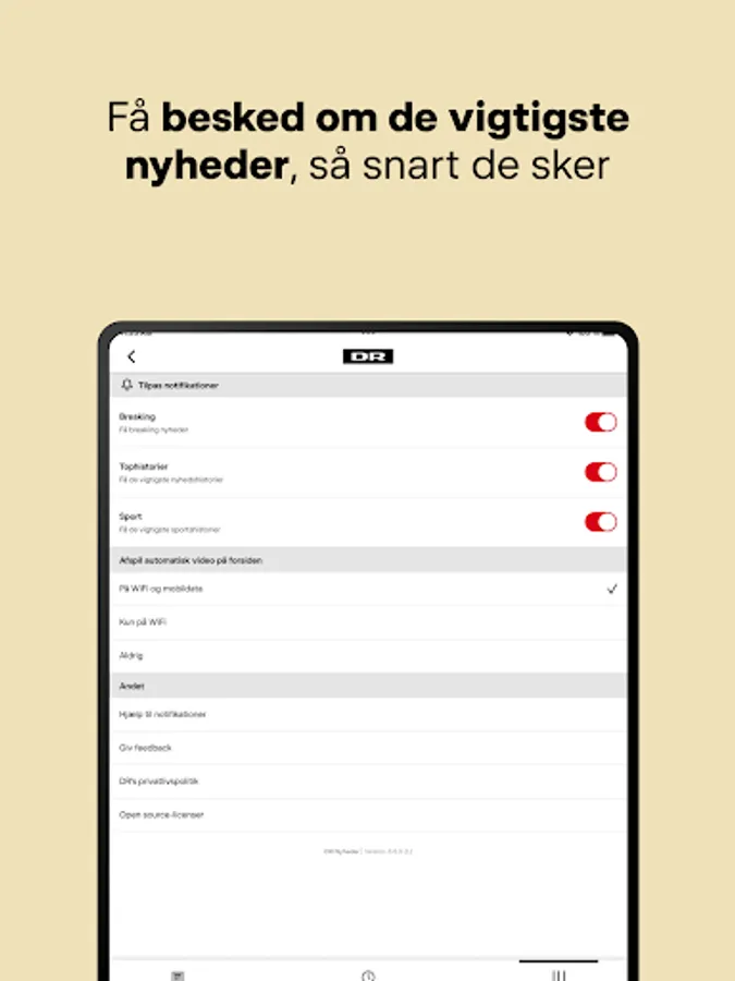 If you wish, you can be quickly updated with notifications from DR: Get breaking news and important stories directly to your phone.