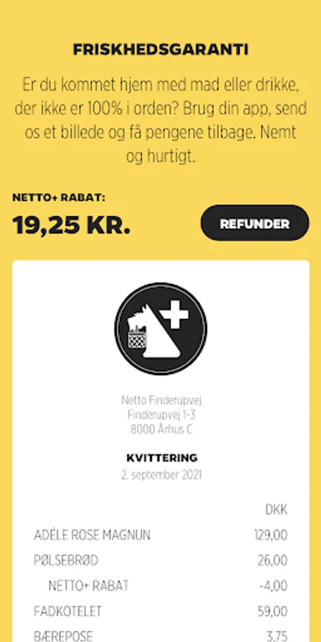 Have you come home with a food or drink that is not as expected? Within 5 days of your purchase, you can refund all food and drinks. Find the receipt in the app, send us a picture and get the money back on a credit card. Easy and fast – without driving back to the store.