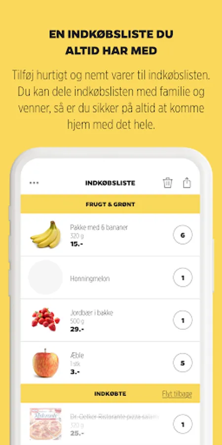 Create a digital shopping list in your Netto+ app. Add items to the shopping list quickly and easily. You can share the shopping list with family and friends, so you are sure to always come home with everything.