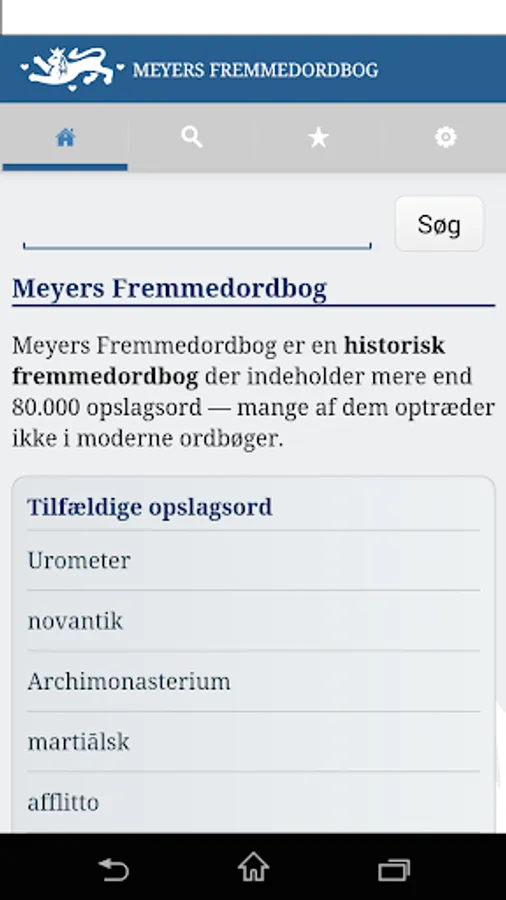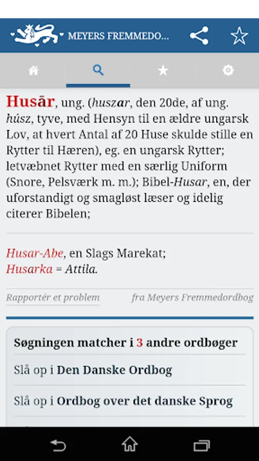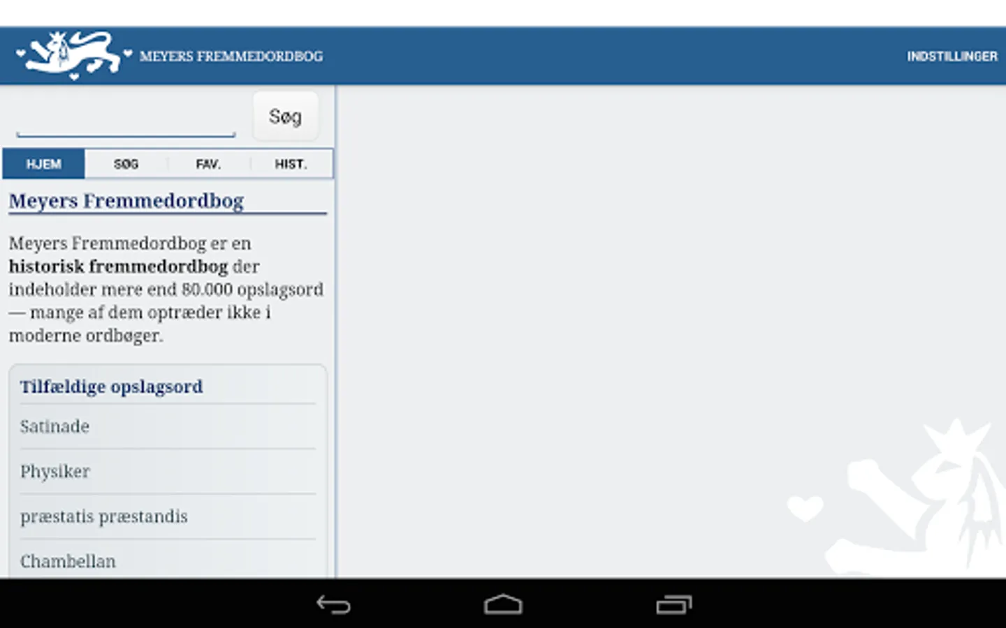The dictionary is an independent app, but linking directly to entries in other dictionaries from the Danish Language and Literature, for example, the Danish Dictionary and Dictionary of the Danish language.