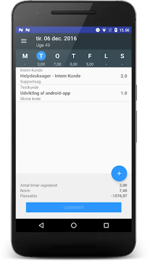 Use the stopwatch for smaller jobs and confirm one day directly on your phone.