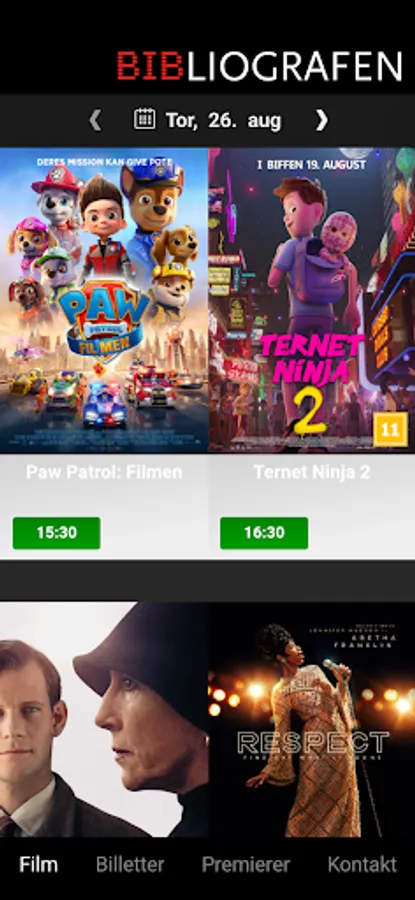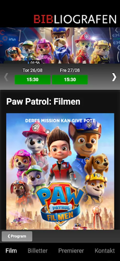 With this app you have the opportunity to browse the program for Bibliografen and see additional film information such as trailer, censorship, participating actors, duration, etc.