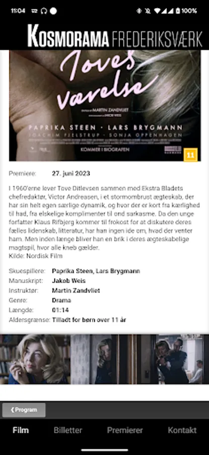 With this app, you have the opportunity to browse the program for Kosmorama Frederiksværk, as well as see additional film information such as trailer, censorship, actors involved, duration etc.