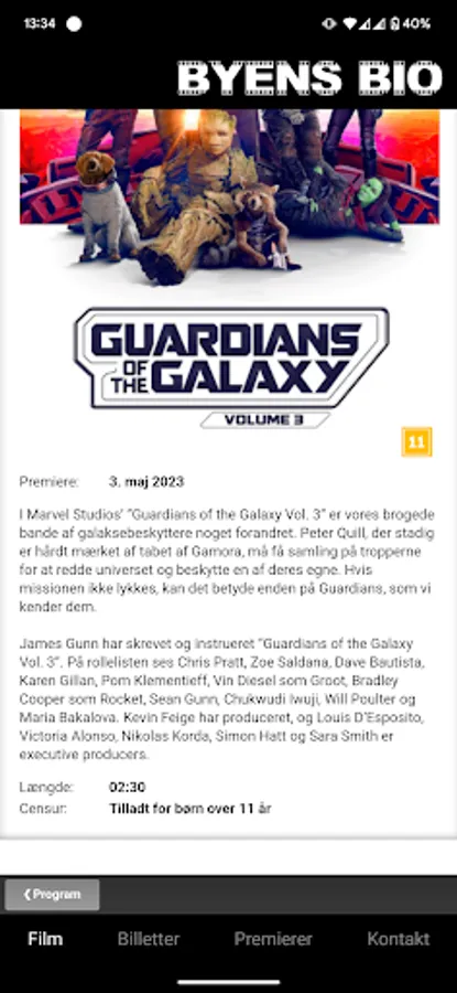 With this app, you have the opportunity to browse the program for Byens Bio, as well as see additional film information such as trailer, censorship, actors involved, duration, etc.