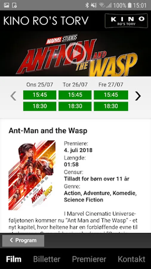 With this app you have the opportunity to review the program for Kino Ro's Torv and see additional film information such as trailers, censorship, cast actors, duration, etc.