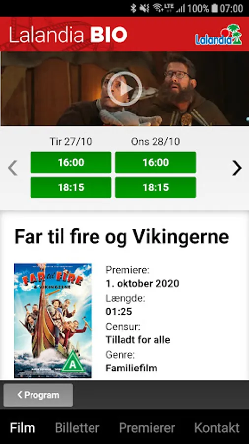 With this app you have the opportunity to review the program for Lalandia Bio as well as see additional film information such as trailer, censorship, participating actors, duration, etc.