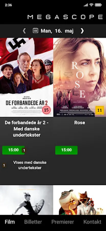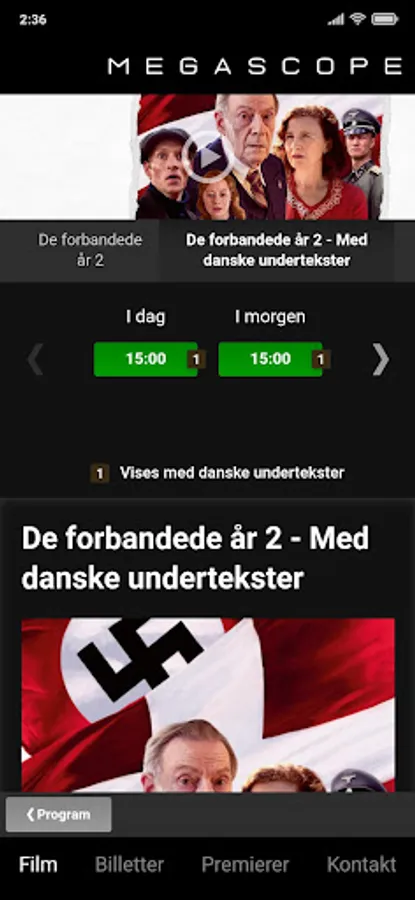 With this app you have the opportunity to browse the program for Megascope as well as see additional film information such as trailer, censorship, participating actors, duration m.m.