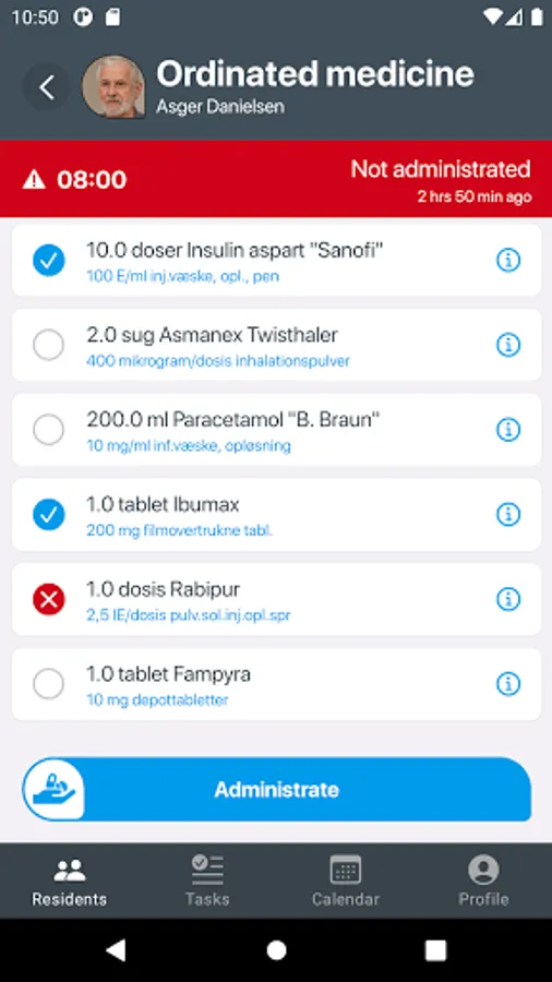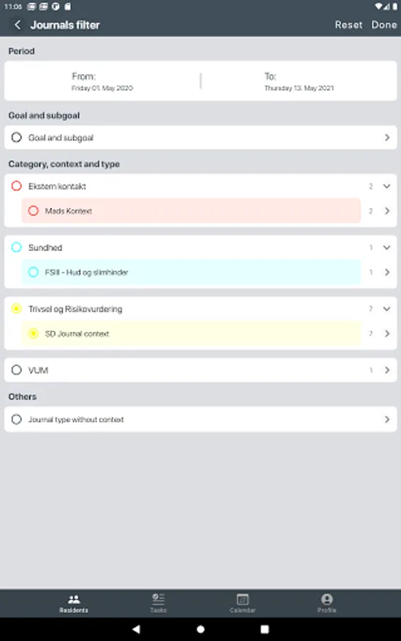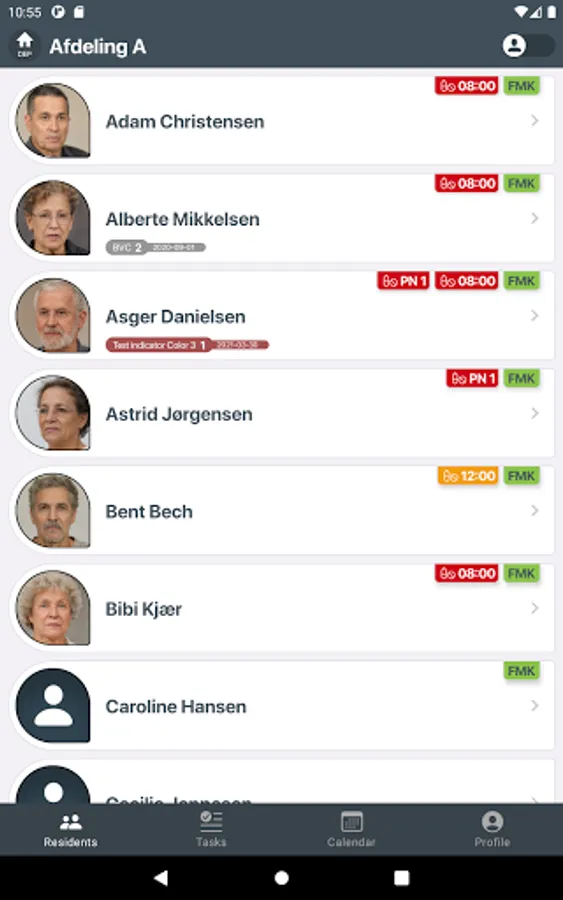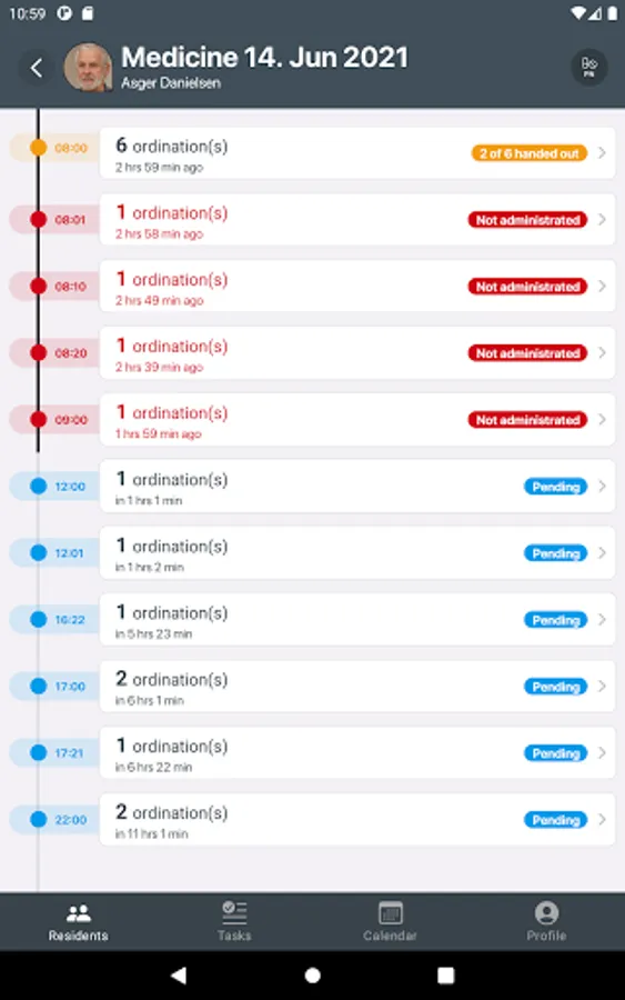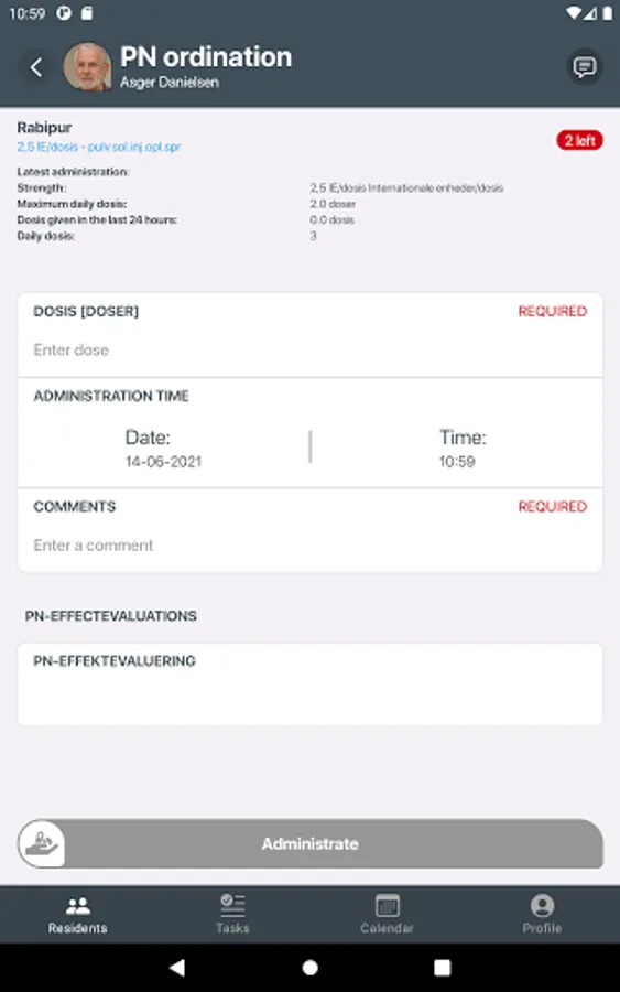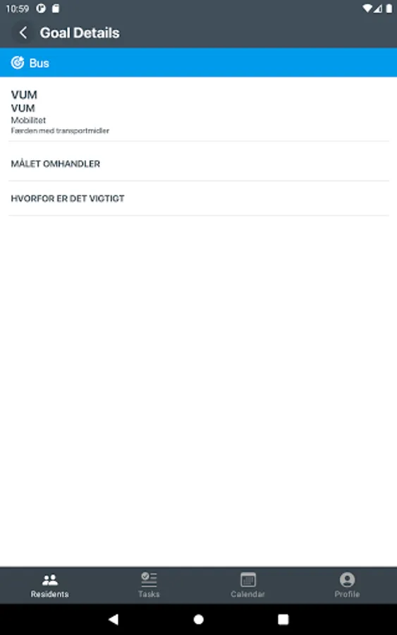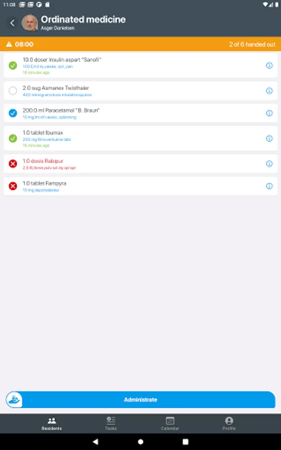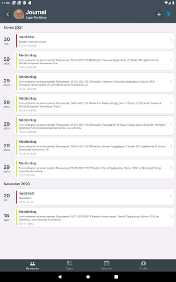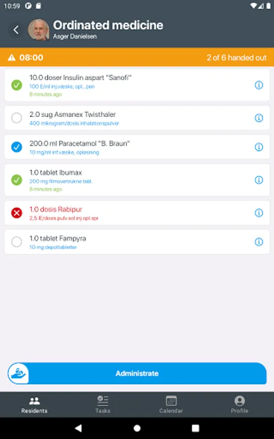 In Sensum, the employee can perform a number of basic tasks such as reading and writing notes in the citizen's diary, stay up to date on the individual citizen's action plan, document the effect of their own efforts in relation to the citizen's goals and sub-goals, assess the citizen's risk, and control and handle medication delivery.