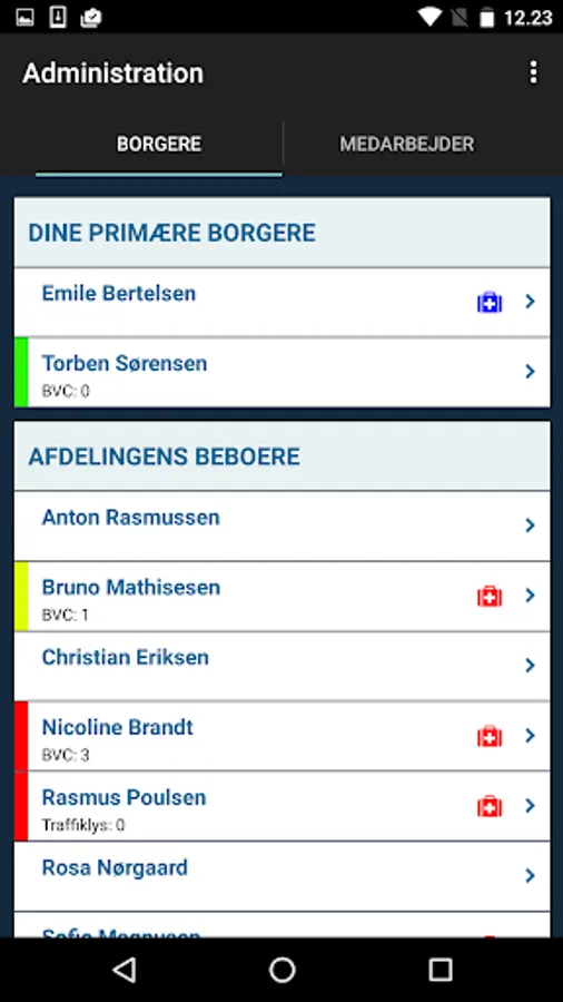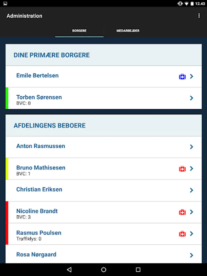 The application contains the most relevant information from the employee's own data card, as well as information about the citizens, the employee is responsible.
