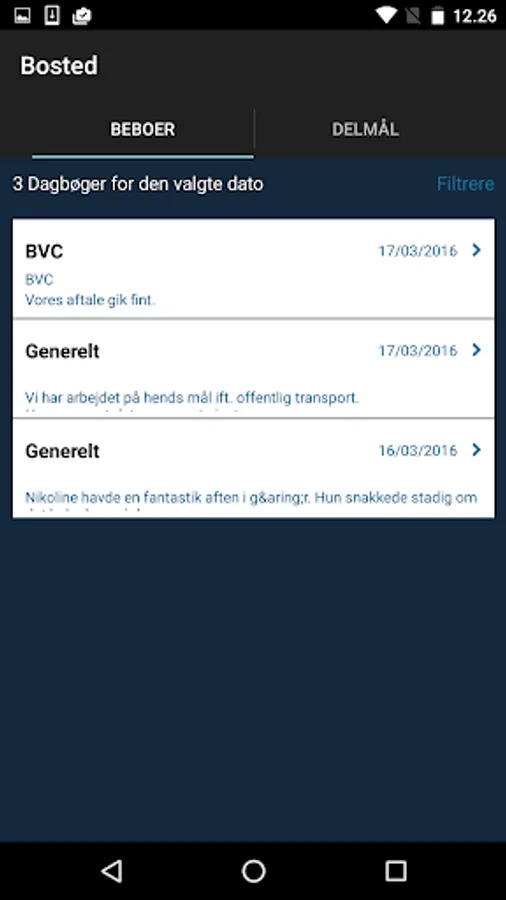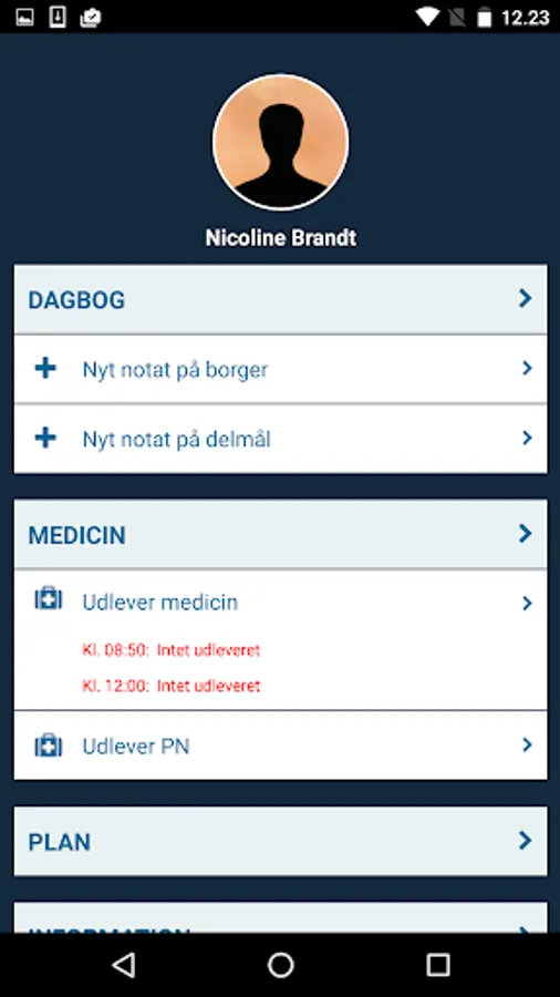 In EG abode Mobile employee can perform a number of basic tasks such as reading and writing notes in the citizen's diary, keep abreast of the individual citizen action, to document the impact of their own inserted in relation to the citizen's goals and targets, risk assess citizen, as well as control and manage dispensing medicines.