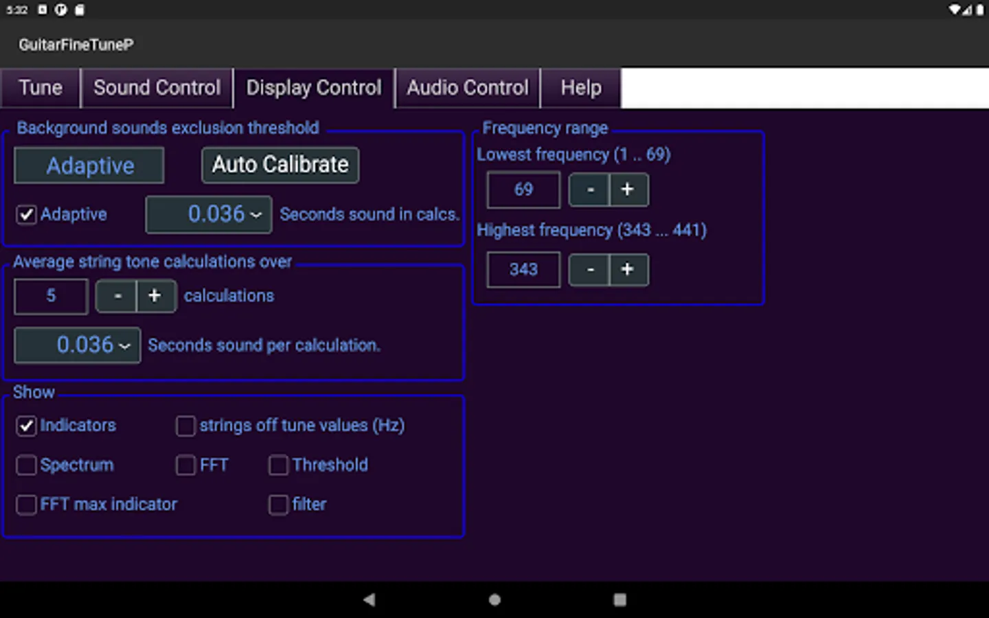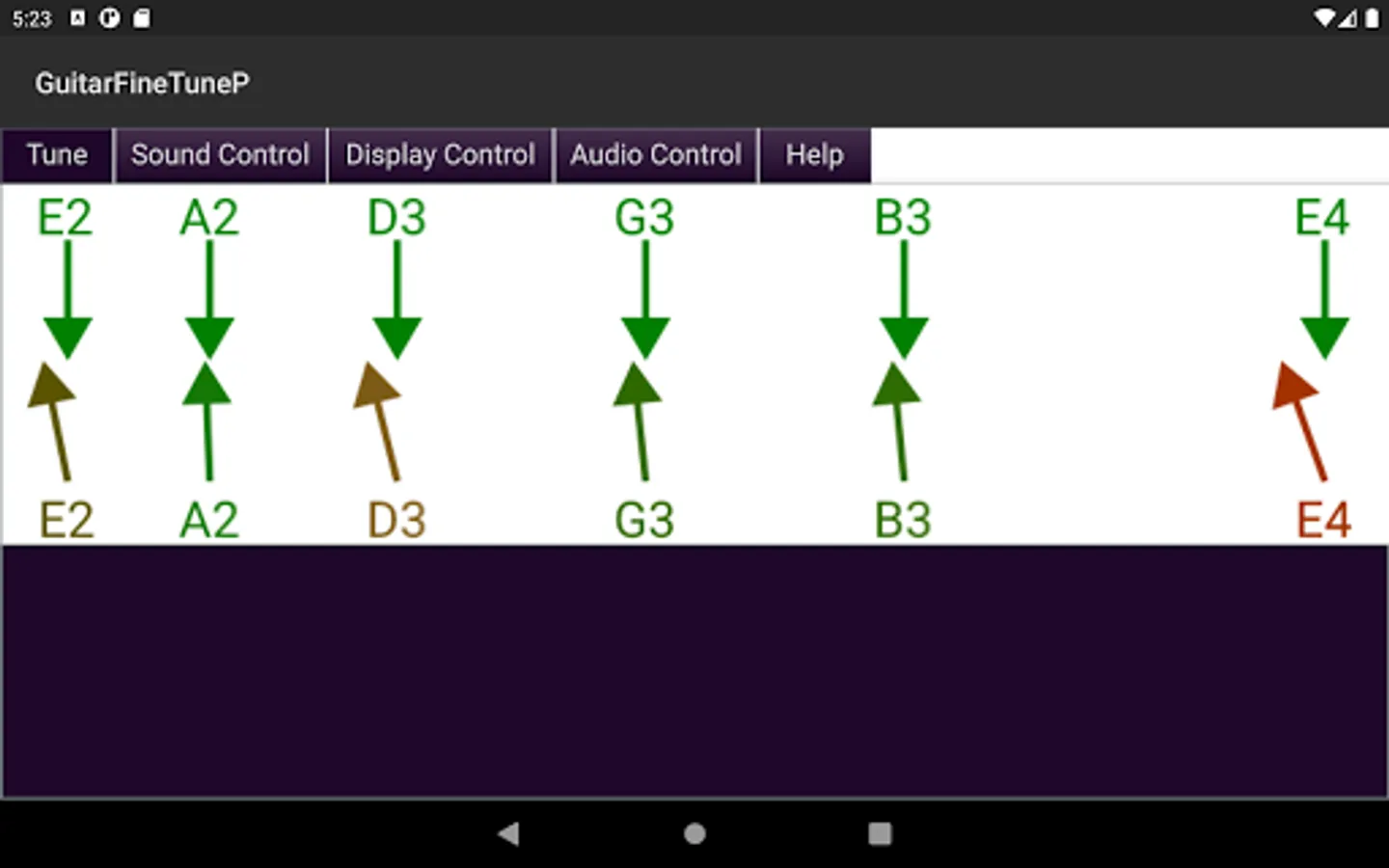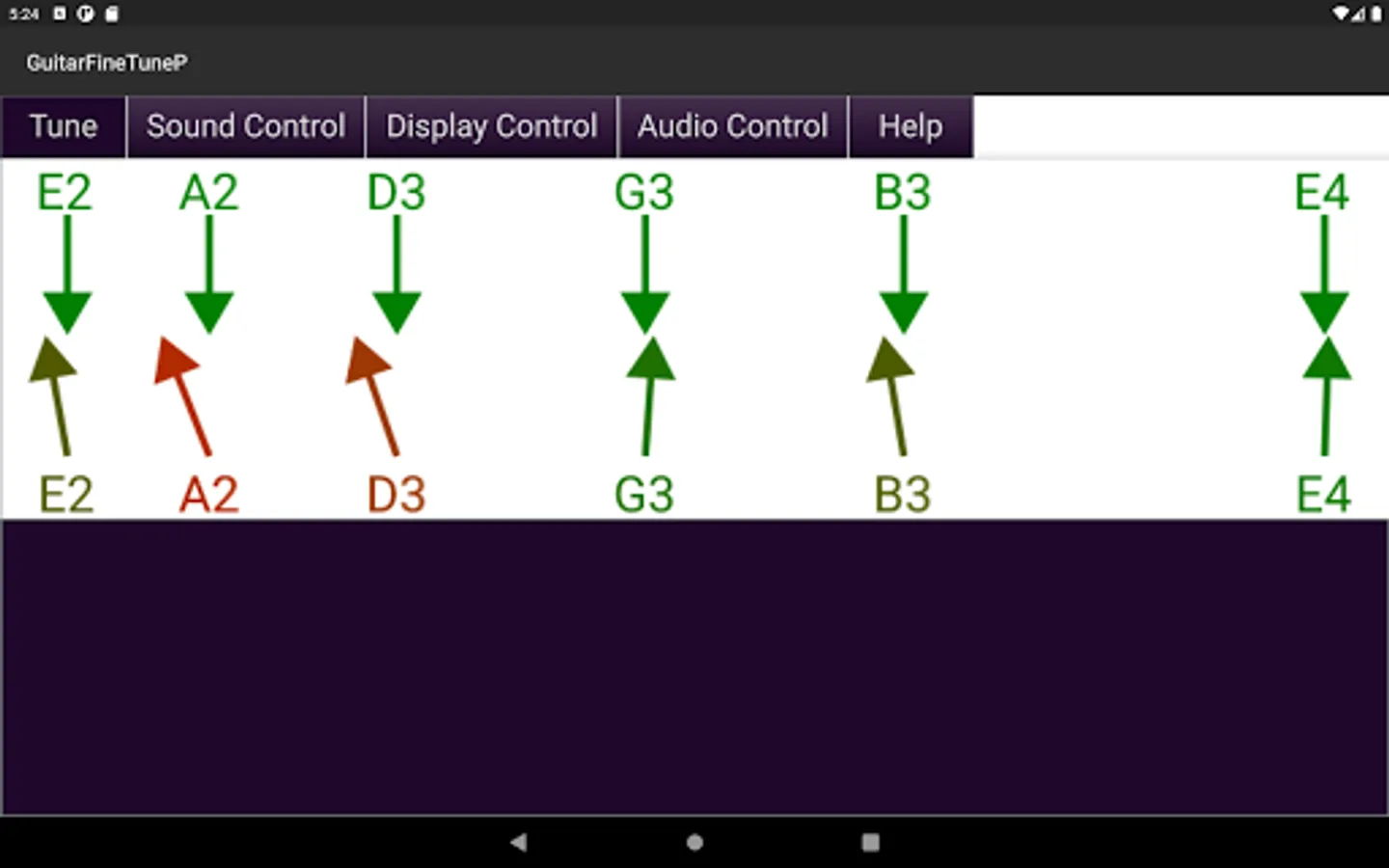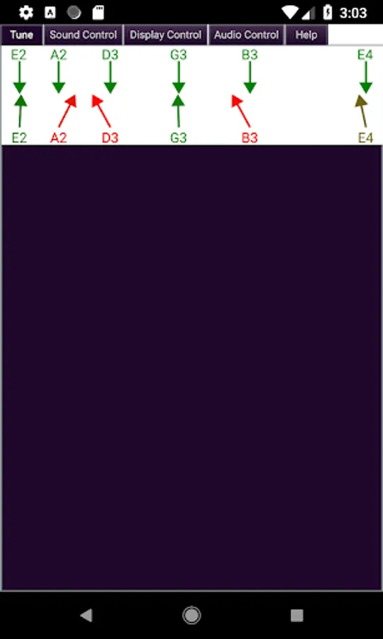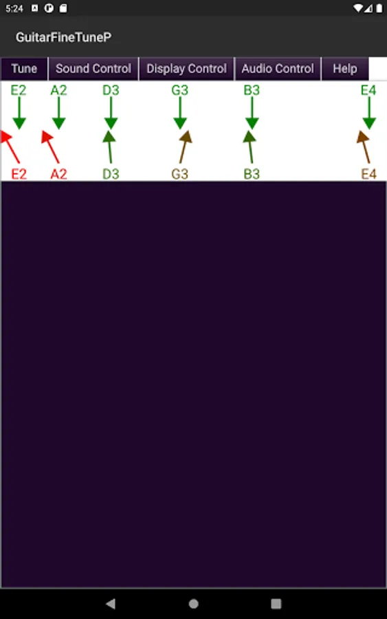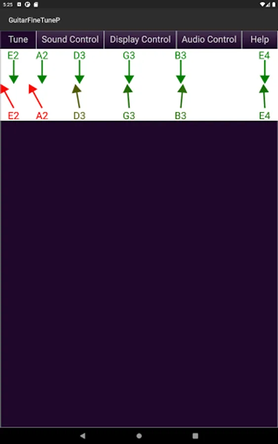 - Displays the actual tone of the guitar strings compared to their correct tone in
