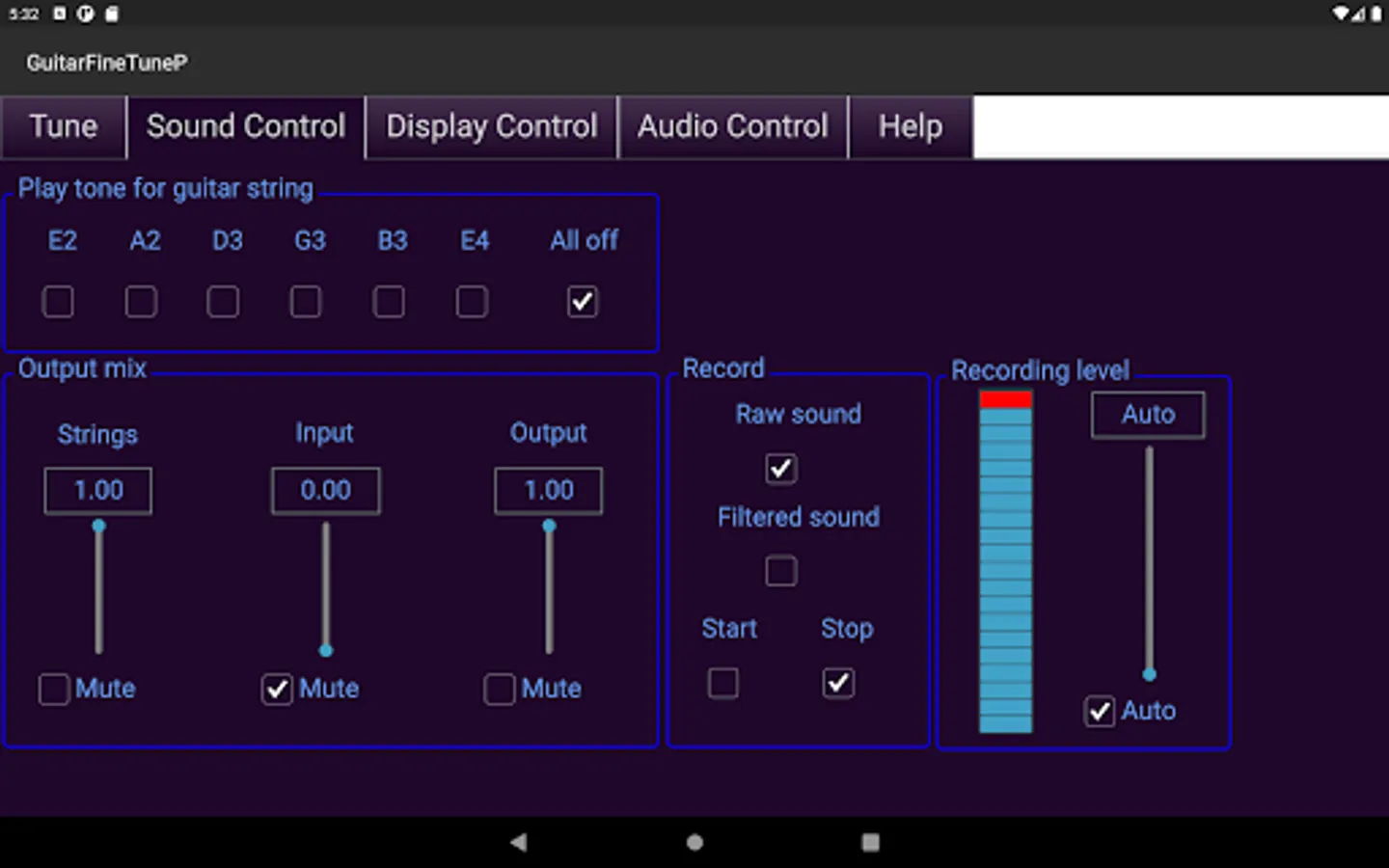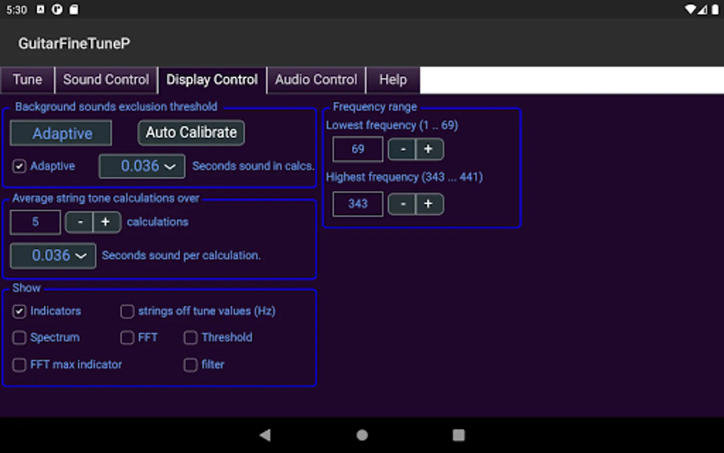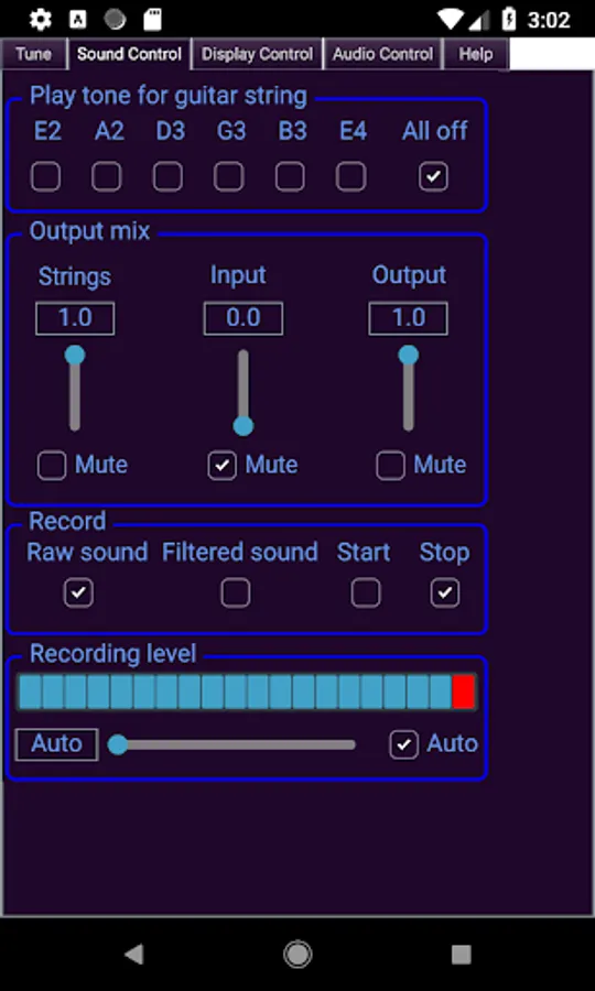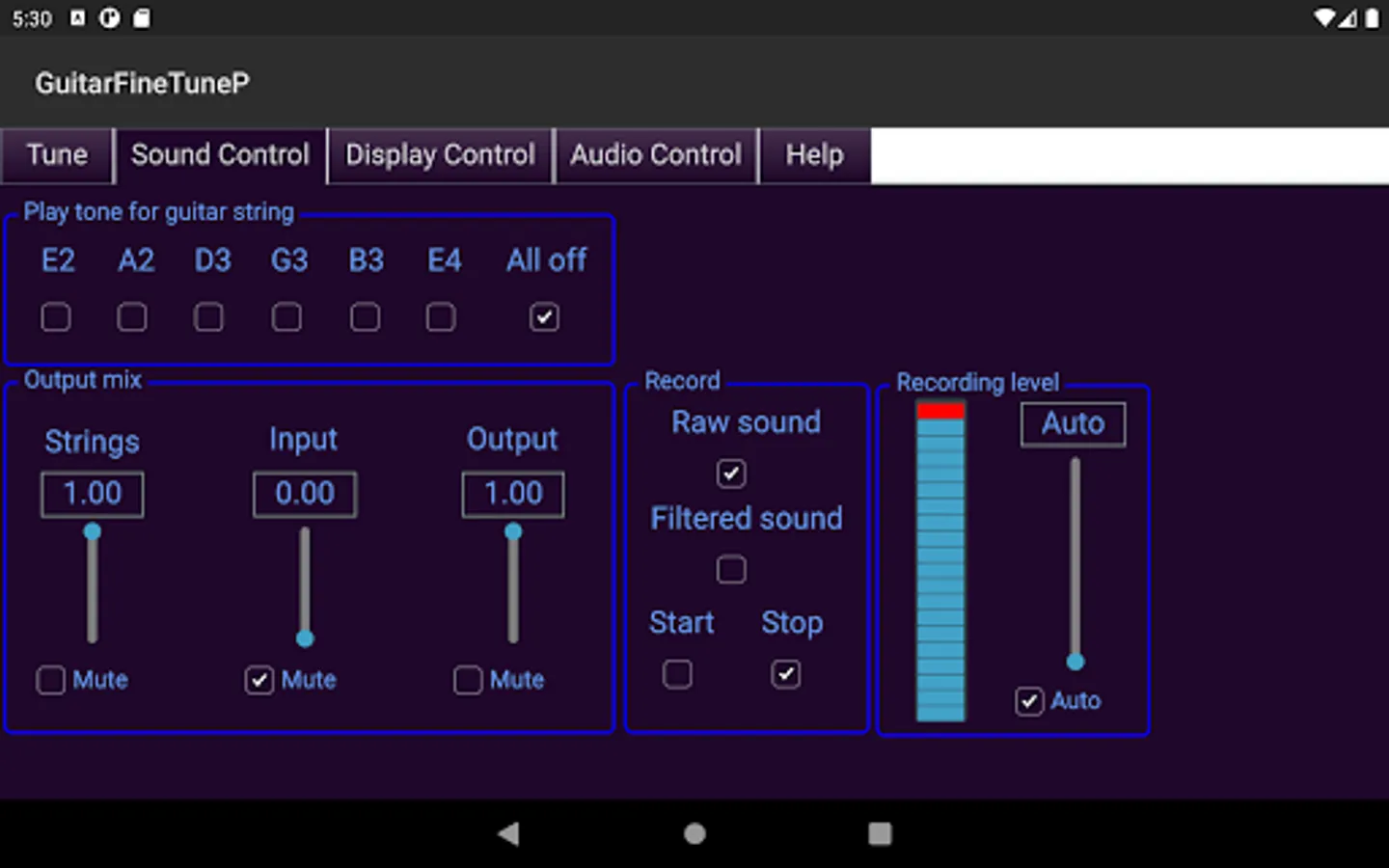- Displays the actual tone of the guitar strings compared to their correct tone in