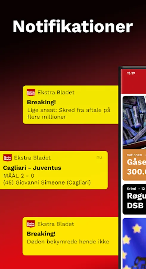 We provide the news overview in headline form, and if you want to go more in-depth with a story, simply click on it, after which you will be directed to our website, ekstrabladet.dk.