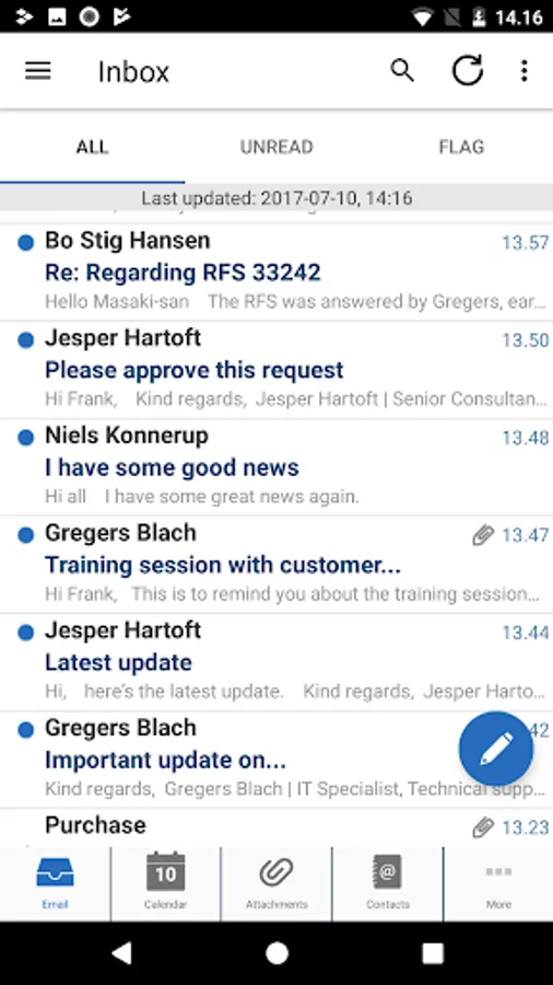 - Quickly find your contacts and frequently used emails with TypeAhead function and search email addresses and emails stored on the mobile device and the server.