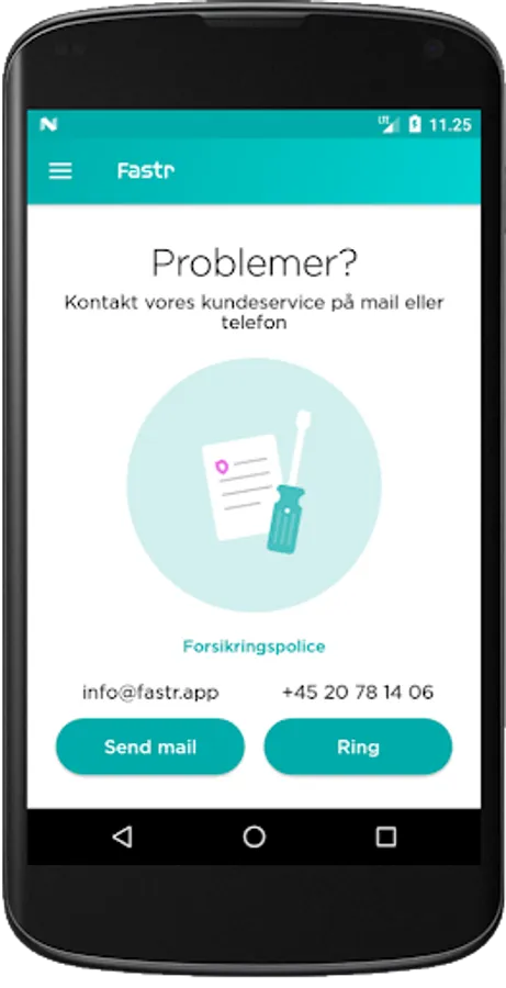 In the contact section you can get in touch with Fastr via. phone or mail if problems or questions arise along the way. here, among other things, there is also access to the insurance policy.