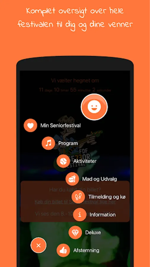 If you get hungry, you will also find a complete overview of all the stalls where you can buy food as well as an overview of the various FDF committees that are at the festival. You can also stand in a virtual queue for activities - then you can dance in front of the stage instead of standing still in a boring queue.