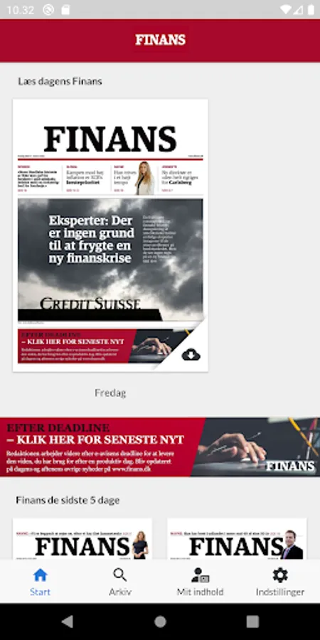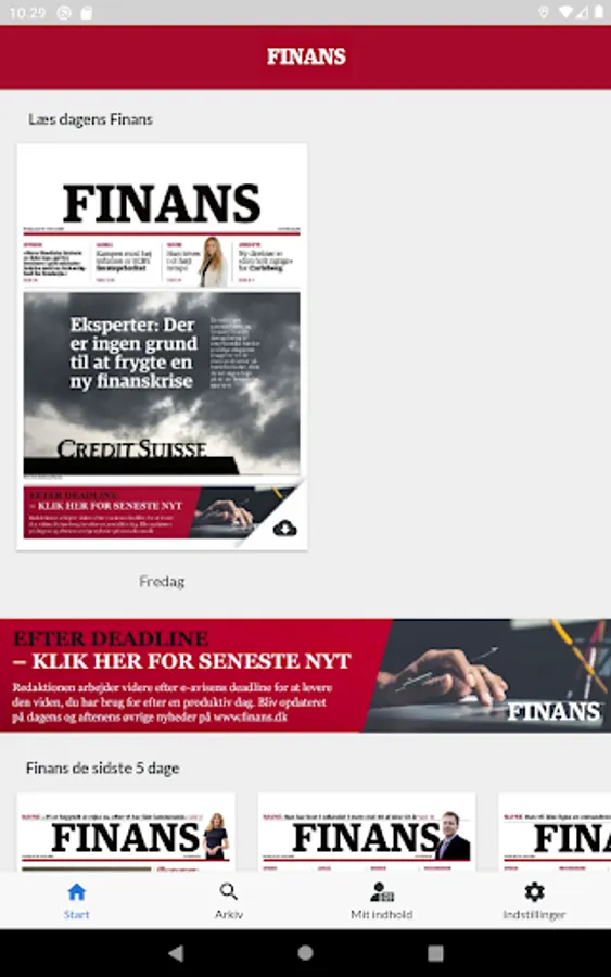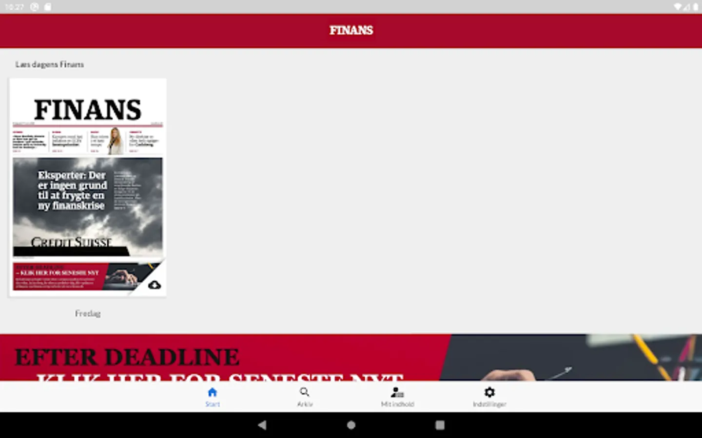 As a subscriber to Finans, in addition to the e-newspaper, you have access to all content on our updated website http://Finans.dk and in our app for Android. With our push notifications, you can be notified as soon as a new edition of the newspaper is ready in your app or on your browser.