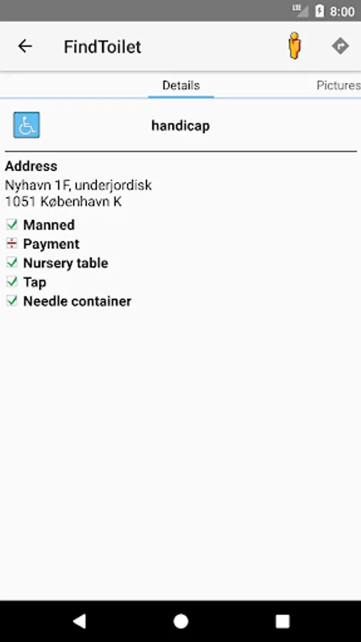 - Details about each toilet with information about staffing, changing table and other practical things.