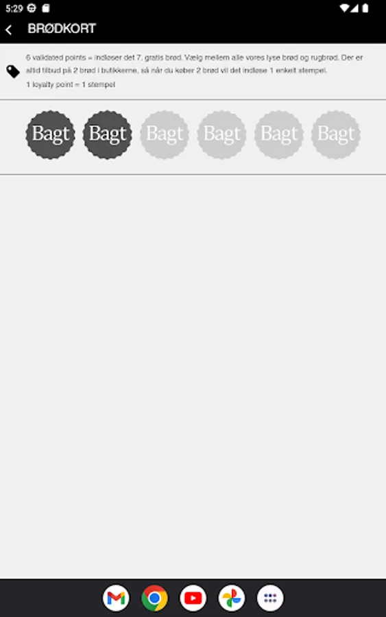 With the app, you also get rid of the many physical stamp cards that e.g. gives you free coffee or bread on the 7th. In the app, we have collected all your cards so that you will never forget your stamp card at home.