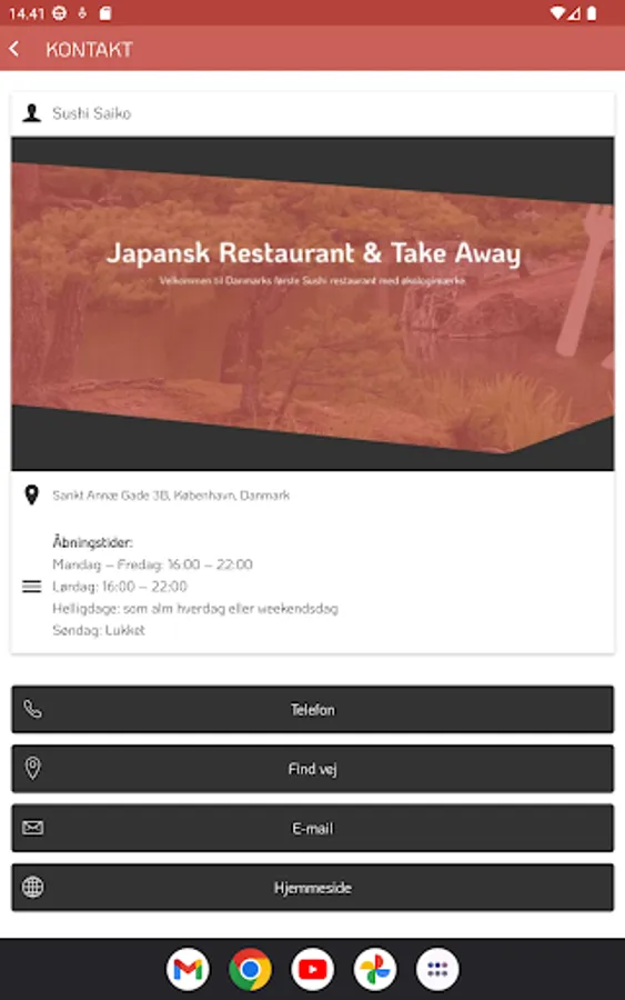 In order to avoid possible waiting time, it is a good idea to call ahead and order takeout and it is also a good idea to book a table well in advance as there is limited space. We appreciate good service. All our customers must have a good experience and be satisfied with both the food and the service at Sushi Saiko. If you are satisfied, please tell others, if not tell us so we can be even better.