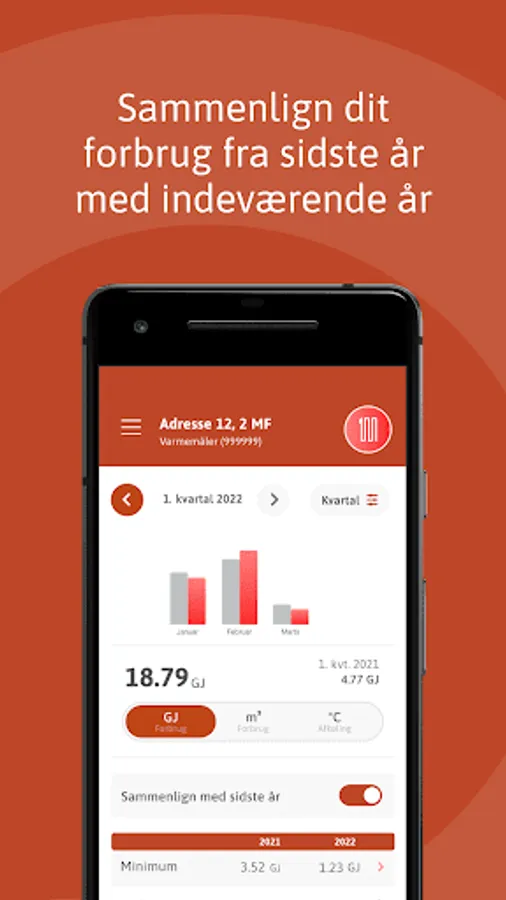 With Fjernvarme Fyns app, you can see how much heat you have used in a period of your choice. You can compare the period with the corresponding period last year. And you can compare your consumption and see if you spend more or less than normal for a comparable household.