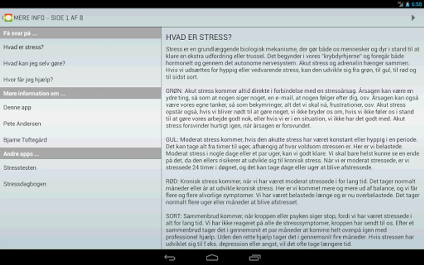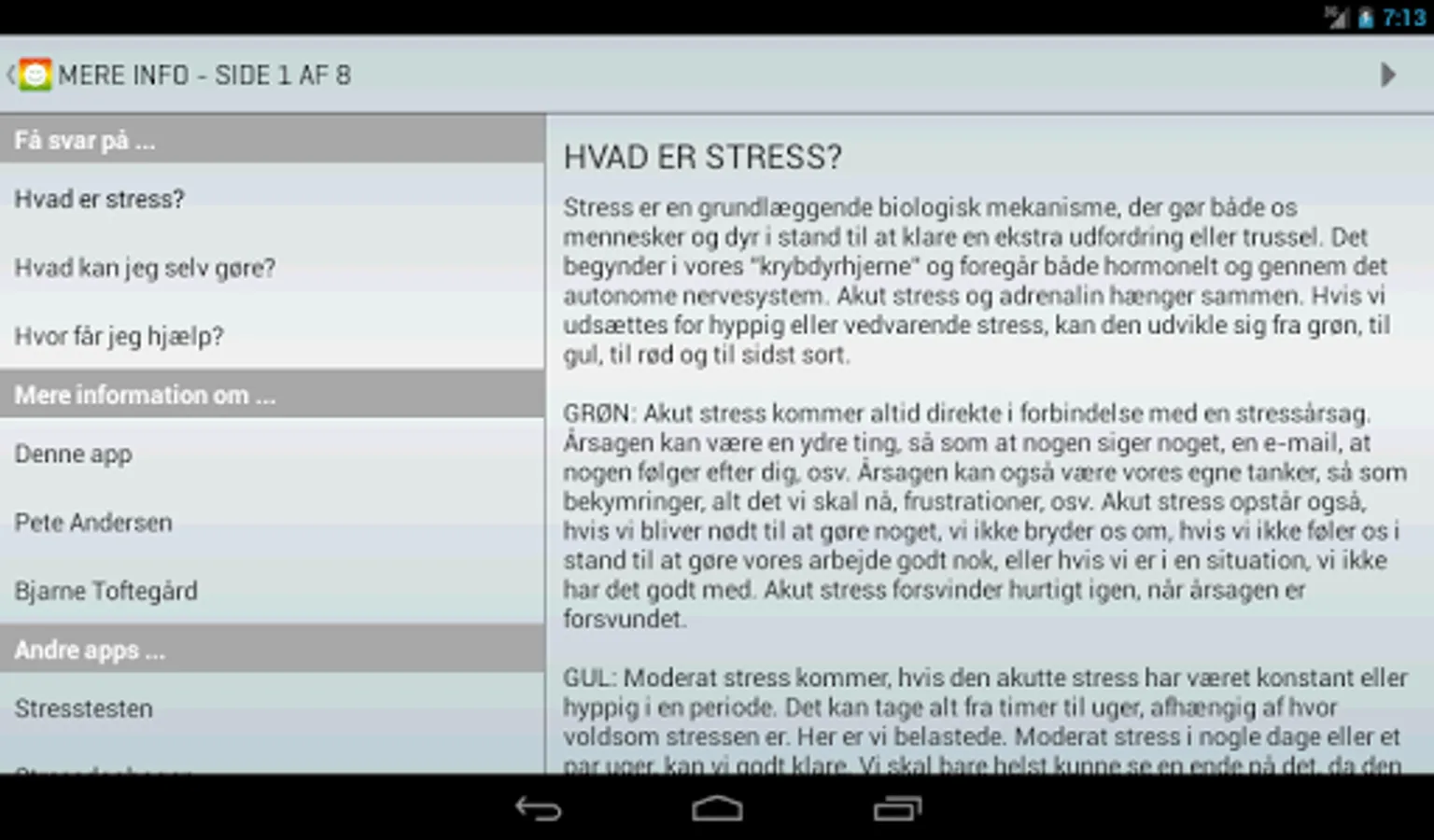 The app builds on the CD "Relax - and control your stress better," developed by the NLP coach and trainer Pete Andersen, who for years has been helping people with harmful stress. Pete Andersen has spoken of stress for many years before the problem was generally known, and he is a specialist in getting you to relax and feel good about yourself. You can see more about Pete Andersen www.peteandersen.dk.