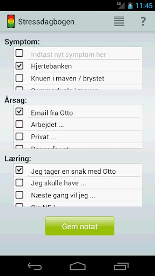 When on the home screen has specified symptom, cause and learning, press the "Save note".