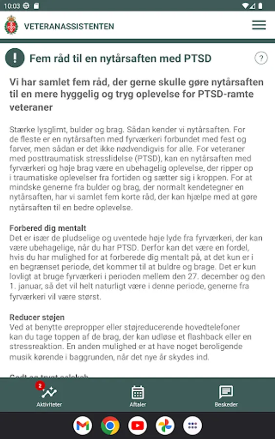 Access to the app and guidance is provided by an employee at the Veterans Centre. The veteran assistant is a digital support for soldiers, veterans and their relatives in contact with the Veteran Center at the Ministry of Defence's Personnel Board. The veterans' center is a single entry point for support for soldiers, veterans and their relatives, and we work for recognition of their efforts.