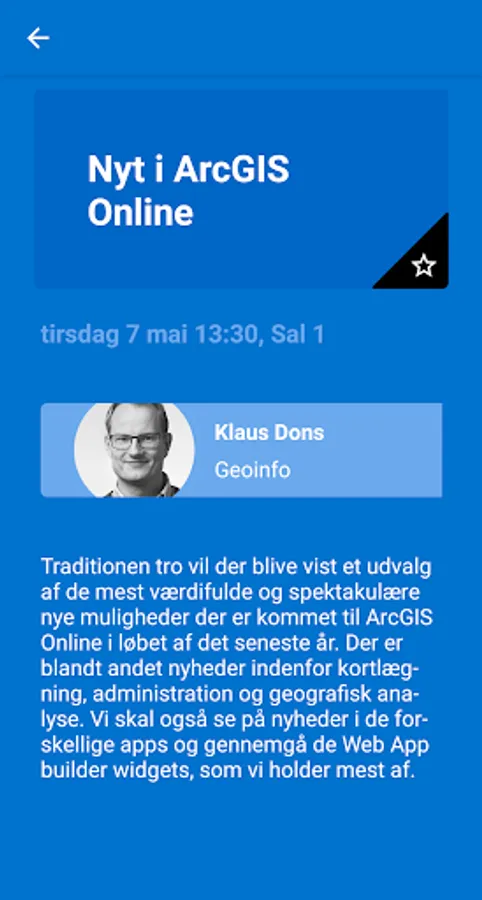 The app helps you plan your own agenda for the conference. You can read more about the user contributions, the technical workshops, the presenters, get information about the exhibitors and other practical information.