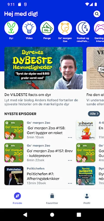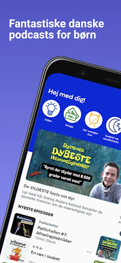 Hear i.a. The DEEPEST secrets of animals with biologist Anders Kofoed, fantastic newly written children's fiction with lots of laughs and excitement and let Denmark's best family counselor, Lola Jensen, cuddle your child with calm bedtime stories and mindfulness exercises.