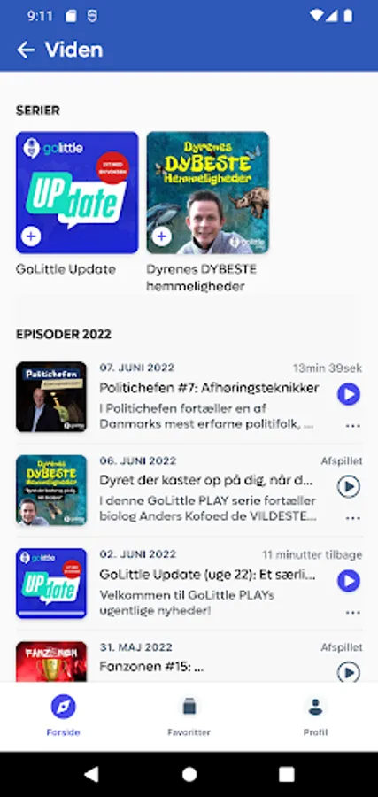 In GoLittle PLAY, your child can also wake up to Denmark's only morning show for children, Go' morgen Zoo, and hear fantastic podcasts and stories about everything from animals to gaming, football, news and real mysteries!