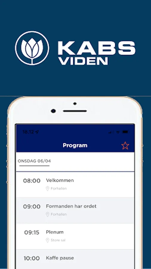 KABS Viden app, with the opportunity to see the program, information and participants for KABS Viden events.