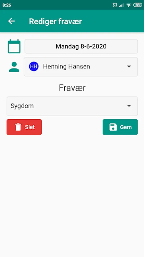 Create / edit absence flex and vacation