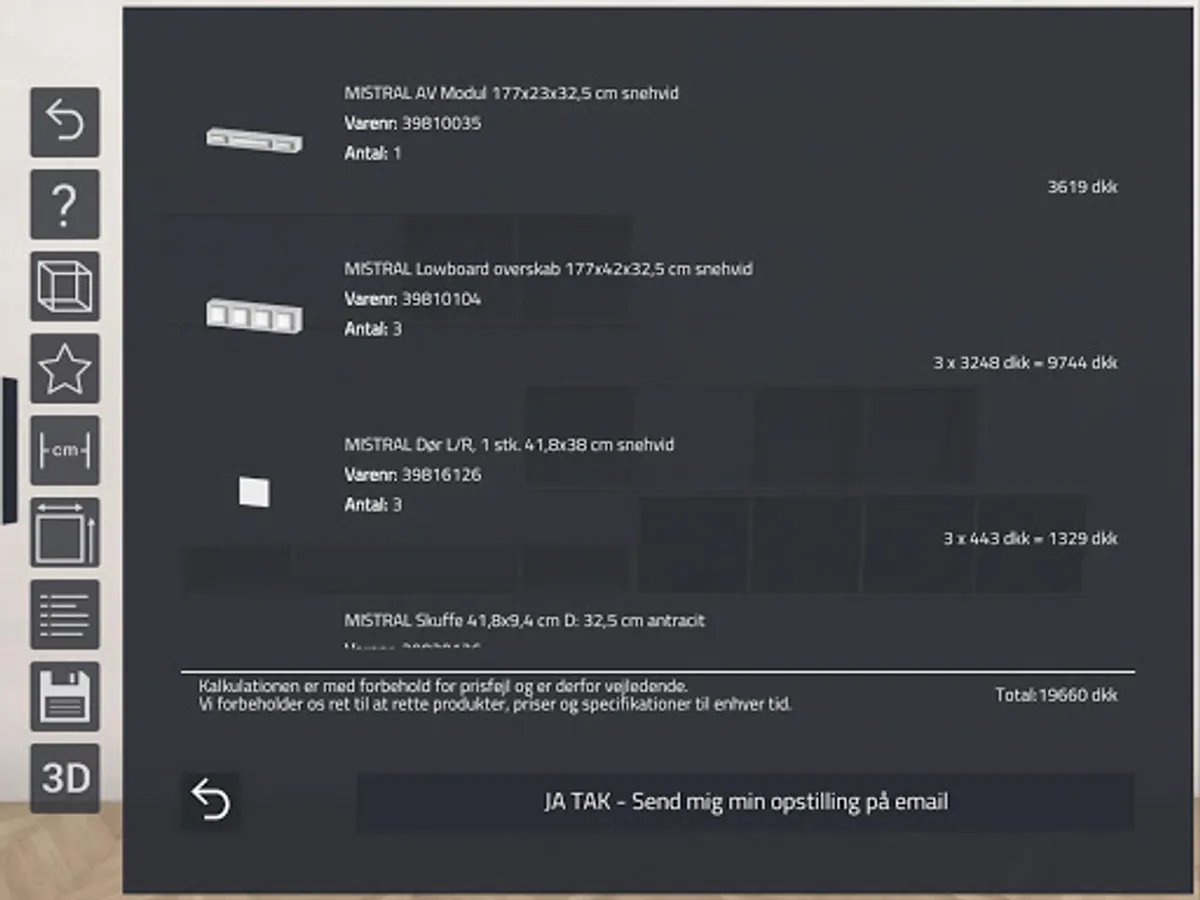 Bring your Hammel product home right now. Test the size and color of the sideboard or shelving unit to your home, to your wall in 3D. We have selected the three best selling products from the three Hammel ranges: MISTRAL MISTRAL Kubus and EDGE by Hammel. Test the products at home in different, selected colors. A free A3 fields (A3 printed with illustration and information) is available at the retailers selling our products or can be printed direkt from the App or from our website www.hammel-furniture.dk.