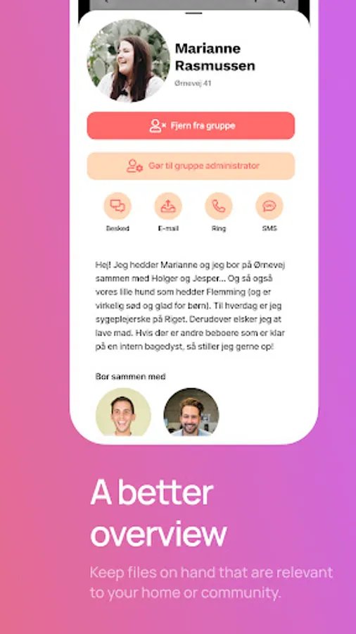 In Heynabo! you create your own, private community. Most of our users are residential properties or student housing with anything between 10 and 800 households. In Heynabo! you can access the following features:
