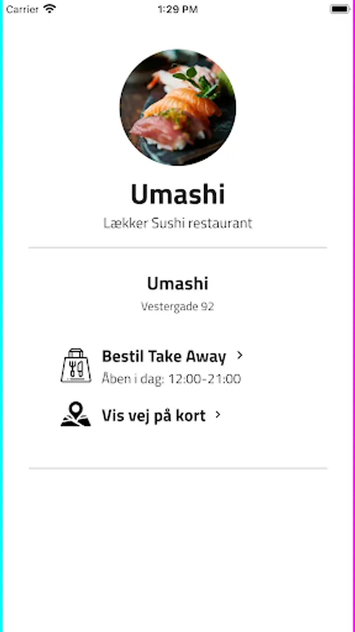 umashi. Our sushi restaurant and take away is centrally located in Odense with good parking right at the door. We offer delivery.