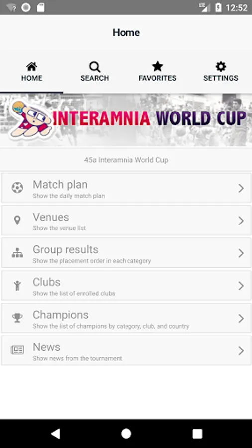 The app gives you the opportunity to follow the tournament, either as a player, team leader or next of kin. You will easily be able to get an overview of your team's location or be directed to the venue for the next match.