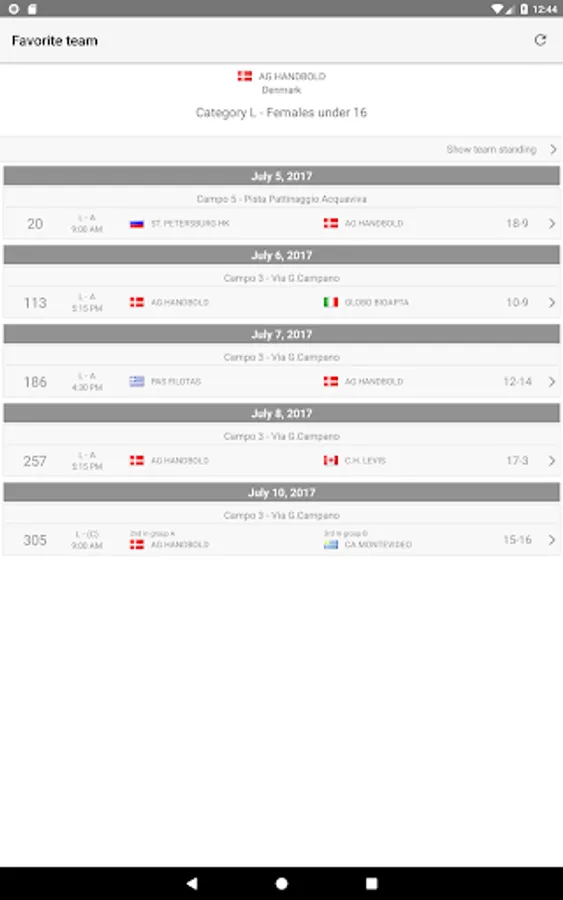 If you need to register for a team, go to the iCup.dk website for more information. Registration may be offered in an upcoming version of the app.