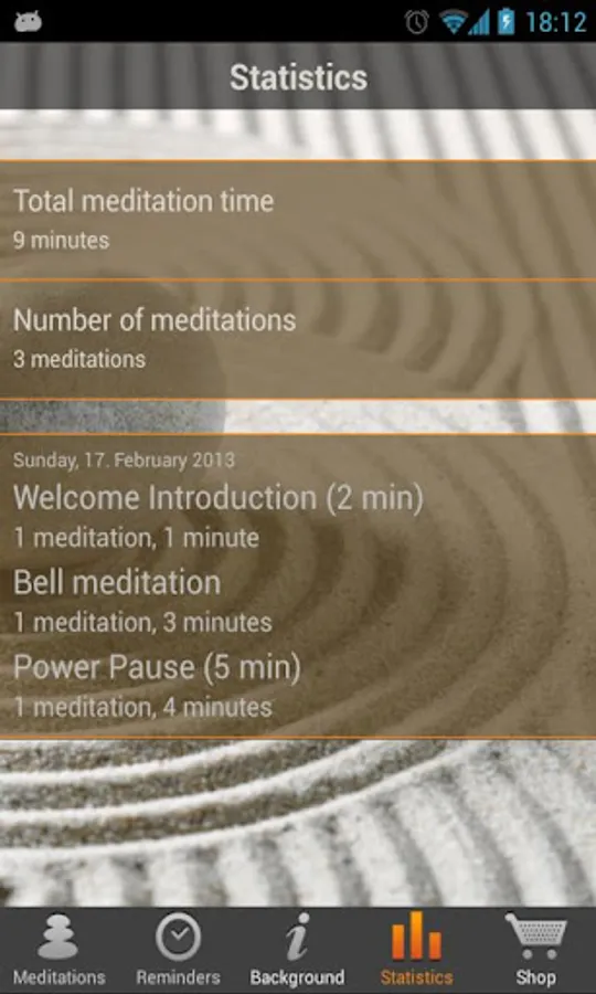 Additionally the app provides a silent meditation timer, allowing you to set a bells only meditation for the length of time you choose. To help support you create a regular mindfulness practice you can set reminders to practice. You can also see a record of how long and often you have practiced, enabling you to track your meditaion practice.