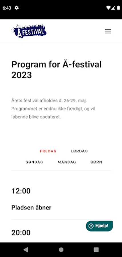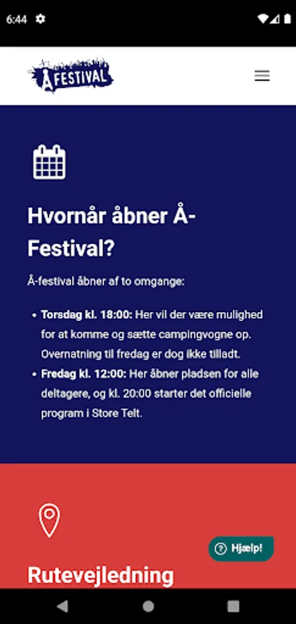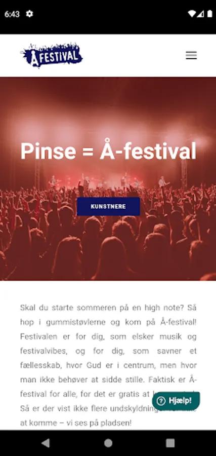 This is an event app for Å-festival, which is Denmark's largest Christian festival. Å festival is held every year at Pentecost, and there is free entry for everyone - to both concerts and meetings. Å festival is organized by IMU & Indre Mission in Sdr. Felling