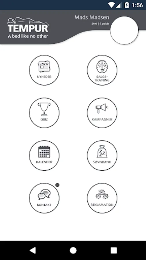 This app is intended for you as a TEMPUR advisor who wants to become even better and more skilled at advising and guiding your customers in TEMPUR's universe and products. The app also gives you in-depth knowledge about sleep in general and equips you to be able to convey this in your store. The app should make the road from you as a dealer and to TEMPUR shorter and communication between you easier. At the same time, it should help to give you an overview of the activities and initiatives that TEMPUR is launching. Last but not least, the app provides in a fun and educational way new knowledge about both TEMPUR and sleep through an entertaining quiz element.