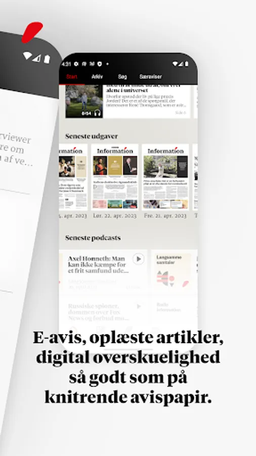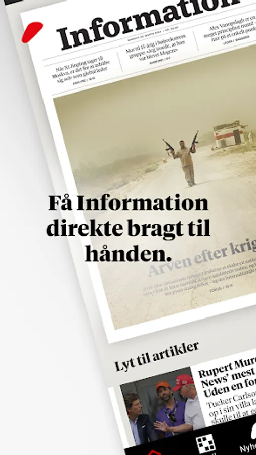 Information's e-newspaper for Android is a digital copy of the printed newspaper. Use the e-newspaper if you want access to journalism with background and perspective in a package you know from the printed newspaper.