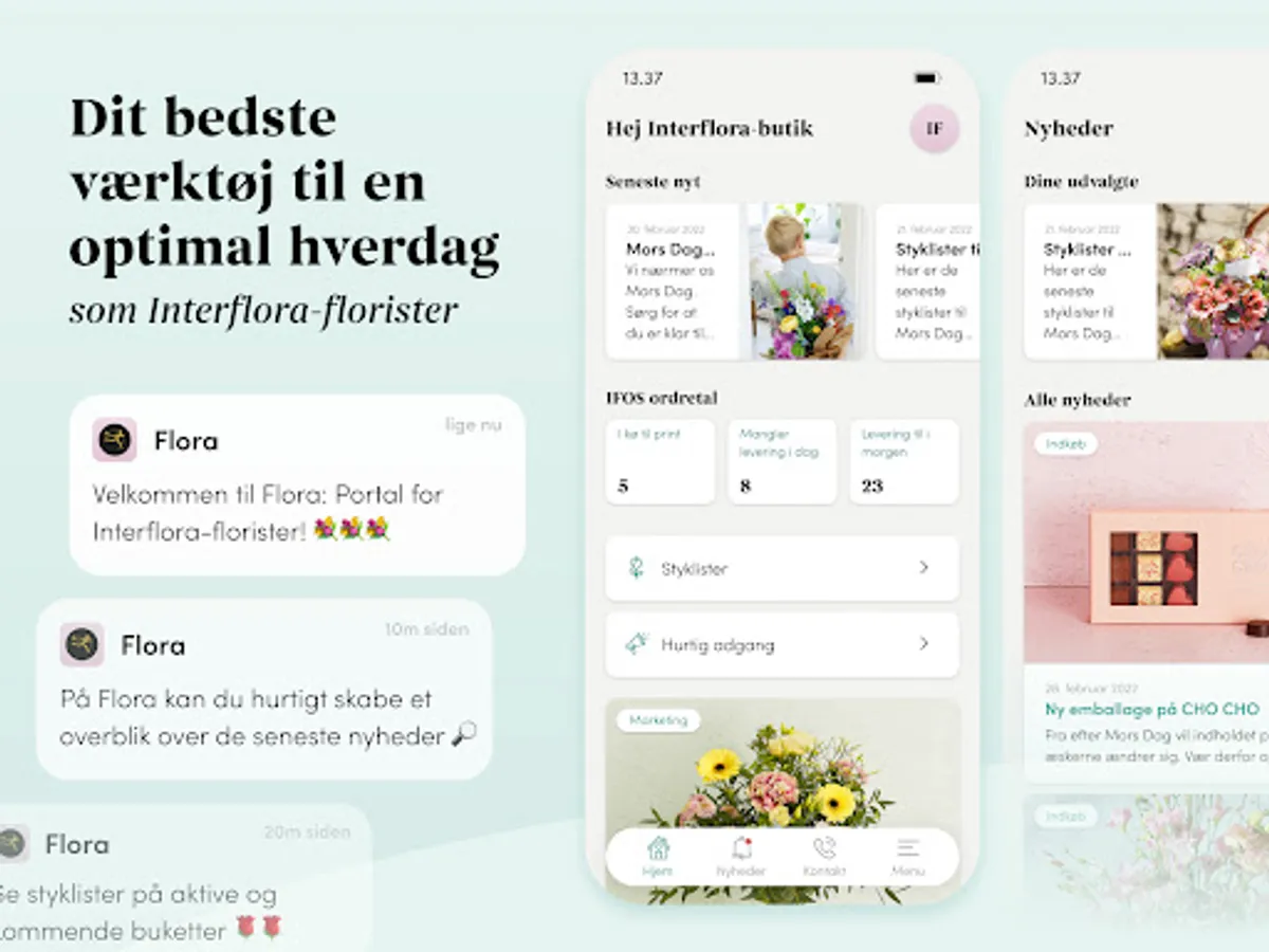Interflora Denmark invites you, Interflora florist, to become part of the new florist portal: Flora. Get the app and experience a number of features that will help optimize your daily workflow as an Interflora florist (owner as employee), as well as create a stronger bridge to the Interflora head office.