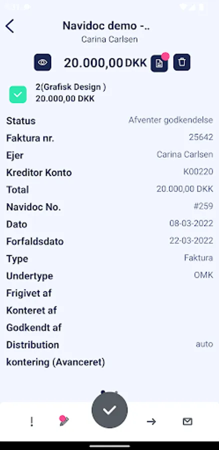 Navidoc workflow giver Navidoc-brugere mulighed for at godkende og bogføre virksomhedens kreditorfakturaer, mens de er på farten.