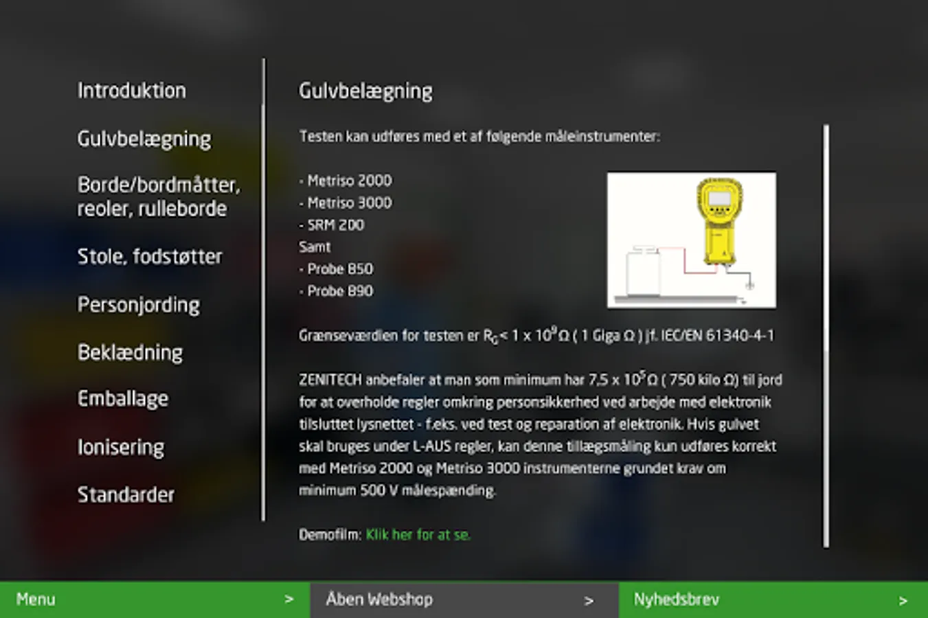 The app also includes a guide to regular control measurements in EPA and limits for individual measurements as well as a complete overview of relevant ESD standards.