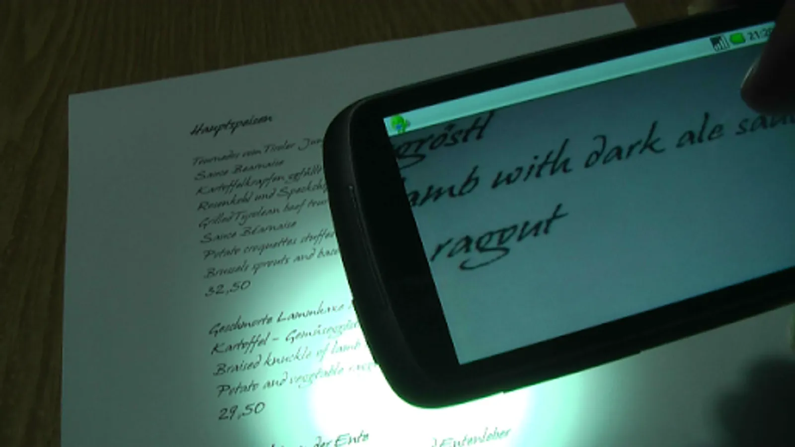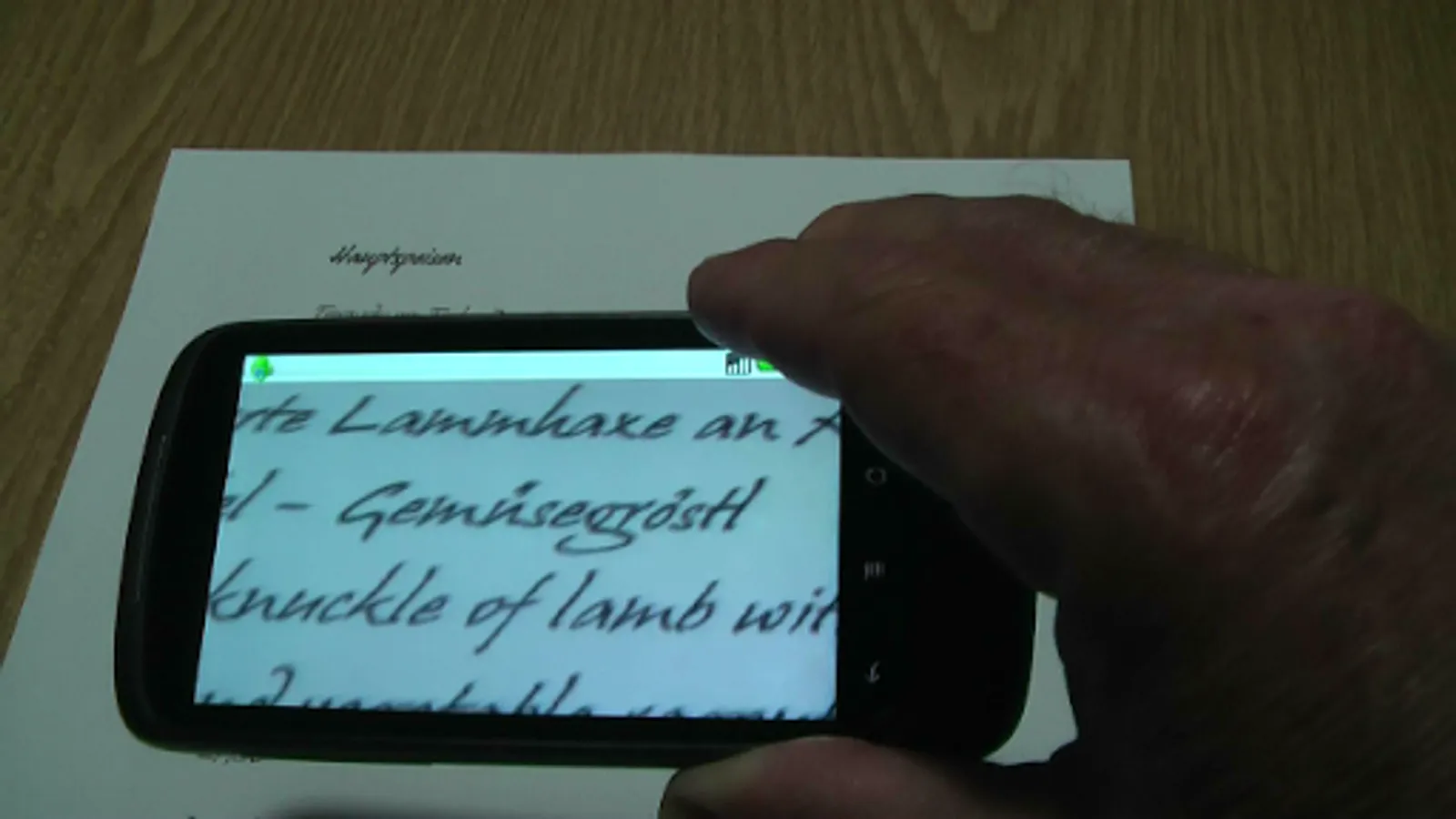 Use the mobile as a magnifying glass to read menu cards and the like without reading glasses. Start with the phone horizontally, the bottom right.