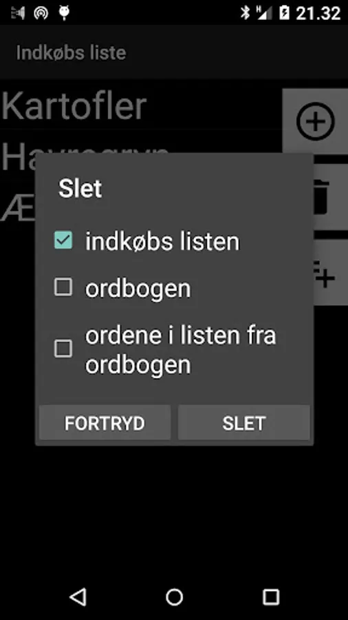 Completely banal. On the other hand it uses so large types that you do not have to fidle with reading glasses when you are out shopping. The items are deleted with a long press, so your list only shows what you are missing.